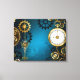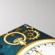 Arrière - plan turquoise, texturé, steampunk avec des engrenages en laiton et or, une clé en argent et l'horloge. Style Steampunk.
