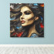 Portrait d'une belle femme exubérant arrogance dans un style abstrait. La technique du vitrail utilise des lignes artistiques dorées, mélangeant des couleurs rouge, bleu et charbon de bois. Ses cheveux cascades comme des vagues dans l'océan, ajoutant une touche d'élégance vibrante à ce portrait captivant de la confiance.