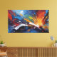 Apportez une explosion d'énergie brute à vos murs avec cette superbe impression sur toile. Caractérisée par une peinture d'expressionnisme abstrait dynamique avec des coups de pinceau épais et des éclaboussures vibrantes de bleu, d'orange, de rouge et de blanc. Cette pièce contemporaine de qualité galerie est le point focal audacieux parfait pour les salons modernes ou les espaces de travail créatifs.