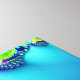 Art fractal Abstrait en bleu, cyan, vert et violet gras et vibrant.