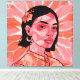 Enveloppez votre moi dans l'élégance moderne avec ce portrait de femme boho qui représente une illustration artistique audacieuse d'une femme confiante avec des détails faciaux frappants et des accents floraux. Le mélange de tons chauds rose et orange crée une atmosphère vibrante et stimulante, idéale pour les styles bohème, minimaliste et indien.