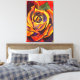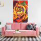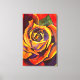 Belle peinture d'art originale de Rose d'or en rouge, orange et or. Aquarelle fine art.