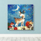 Ce magnifique dessin animé pour enfants présente un joli dessin d'aquarelle d'un cerf endormi et timide avec des fleurs à la tête dans la forêt, entouré d'éléments de décoration automnale comme des champignons, des pommes, des baies, des citrouilles et des petites souris qui courent autour.La magie de la lune et des étoiles brille à travers les arbres. Cette image fait un beau design pour la décoration de la maison de vos enfants. Cette adorable affiche d'illustration de forêt d'automne colorée d'automne des amis de la forêt de cerfs va égayer la chambre de n'importe quel enfant et est un merveilleux cadeau pour l'action de grâce, anniversaire ou décoration de maison. Conçu avec amour par UtART.