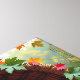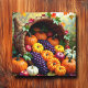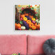 A pretty canvas wall art with a cornucopia full of pumpkins, grapes, apples and surrounded by Fall leaves.