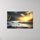 A powerful scene where the ocean meets the mountains beneath a blazing sky. The crashing waves symbolize movement and transformation, while the sun breaks through the clouds bringing hope. A striking artwork for spaces seeking energy, depth, and inspiration.