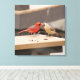 Les charmantes Cardinales du Nord, hommes et femmes, semblent s'embrasser affectueusement, sur cette toile enrobée et joyeuse. Décor amusant pour la maison ou le bureau!