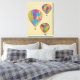 Ajoutez un peu de style à votre mur avec cette impression de toile avec des illustrations peintes de montgolfières aux couleurs arc-en-ciel vives contre un sable doux ou un arrière - plan de couleur claire.