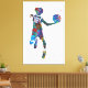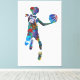 Watercolor-style artwork of a teenage basketball player in mid-air, holding a ball in an energetic pose. The vivid splashes of color and dynamic composition emphasize motion and athleticism, making it a striking stretched canvas print for contemporary spaces or sports-themed interiors.
