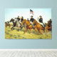 Bataille de Prairie Dog Creek par Ralph Heinz. Ouest du Kansas — Le 21 août 1867 Après la guerre de Sécession, les colons se précipitèrent sur les terres riches et relativement vides des Grandes Plaines. Vers le milieu de 1867, les tribus indiennes des Plaines, reconnaissant la menace qui pèse sur leur mode de vie traditionnel, attaquaient régulièrement les colons, les cheminots et les voyageurs. Lorsque les citoyens du Kansas en colère et effrayés ont demandé de l'aide militaire, le département de la Guerre a autorisé à placer des unités de milice volontaires en service actif pendant l'urgence. Le 15 juillet 1867, quatre compagnies de la 18e cavalerie volontaire du Kansas sont regroupées au service fédéral. Sous le commandement du capitaine Horace L. Moore, le 18e s'embarqua immédiatement pour un mois de campagne vigoureuse. Retour au camp à Ft. Hays, alors au milieu d'une épidémie de choléra, les Kansans ont ensuite joint leurs forces à la 10ème cavalerie américaine, les fameux "Soldats Buffalo" noirs. Une force combinée de 135 hommes, commandée par le capitaine George A. Armes du 10e, descendait la rivière Saline ; le capitaine Moore, avec 125 Kansans, scouta en amont. Les deux groupes avaient perdu contact entre eux lorsque le groupe du capitaine Armes a été frappé par 300 à 400 Kiowas et Cheyennes sous les grands chefs de guerre Satanta et Roman Nose. Alors que le groupe d'hommes d'Armes tenait son terrain par des combats acharnés, les hommes du 18e Kansas, qui entendaient le bruit de la bataille, parvinrent à se frayer un chemin jusqu'à Armes. Pour sortir de l'impasse, le capitaine Armes a formé un parti pour une charge contre les Indiens. Dirigée par Armes, la force d'une vingtaine d'réguliers et de soldats du Kansas noirs s'est déplacée d'abord vers Prairie Dog Creek, puis a remonté la colline vers le corps principal des guerriers. Les Indiens se sont dispersés, mettant fin aux combats de la journée. La cavalerie avait perdu 3 hommes morts et 36 blessés ; les Indiens, 50 morts et 150 blessés. La bataille du chien des Prairies a mis fin aux opérations offensives américaines à la frontière du Kansas pour l'année, et à l'automne, des traités ont été signés avec les tribus des plaines du Sud. La fière tradition de la 18e cavalerie volontaire du Kansas est aujourd'hui portée par les hommes et les femmes de l'armée du Kansas et de la Garde nationale aérienne. Toutes les impressions sont présentées et affichées à la plus grande taille/résolution disponible. Le système vous empêchera de choisir une taille plus grande que l'image est capable. Variez selon les tailles disponibles de la plus petite à la plus grande et choisissez votre taille de choix. zazzle.