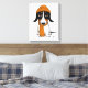 Dessin de style dessin d'un Piebald Dachshund noir, tan et blanc portant une beanie et une écharpe orange. Une impression de toile amusante pour tous ceux qui aiment les chiens édulcorés. Visitez Doodle World de Jenn pour des illustrations encore plus mignonnes d'animaux et d'amoureux de les chiens.