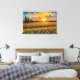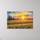 Toile Beau coucher de soleil sur le terrain de tournesol