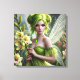 Une belle fée aux cheveux jaune-vert avec ailes blanches portant une jolie robe de chartreuse et un collier de peridot tient un seul gladiolus dans un champ de gladioli.