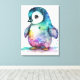 C'est la belle impression sur toile d'art mural de nursery de bébé manchot aquarelle fantaisiste.