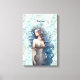 Une belle sirène avec de longs cheveux bleus à flot contre un arrière - plan de turquoise avec un coquillage et un motif frontal.