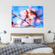 Belles fleurs de sakura, fleurs de cerisiers japonais. Fermer la vue. Arrière - plan rose et bleu foncé. La joie du printemps. Peinture numérique stylisée extra-large à partir d'une photographie. Toile enveloppée ou étirée pour décorer votre lieu. Images florales, et cadeaux pour tous. Vous pouvez transférer cette conception à une variété d'autres produits de votre choix, grands ou petits, y compris des imprimés à bas prix abordables, et des cadeaux. Veuillez utiliser le bouton "Modifier la conception" pour ajuster l'image à la forme du produit particulier. Il vous transmettra à l'outil de conception. Utilisez l'option "Remplir/Remplir" (menu à droite de l'outil de conception). Vous pouvez mettre à l'échelle, faire pivoter, retourner l'image sur le modèle du produit et même y ajouter du texte. Soyez créatif, amusez-vous, achetez-en un et soyez heureux !