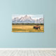 Cette photo présente une promenade solitaire de bison sauvage devant la chaîne de montagnes de Teton à Jackson Hole, Wyoming.