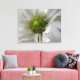 Cette impressionnante impression de toile présente une photo de gros plan détaillée d'une magnifique fleur blanche de chrysanthème. La photographie a été prise en utilisant la macro photographie pour montrer les détails fins de cette belle fleur blanche.