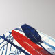 Cette oeuvre vibrante représente une scène forestière dense, utilisant une technique graphique unique qui rappelle l'estampillage de linocut. Les arbres sont illustrés en noir et blanc, avec des lignes audacieuses et plates qui contrastent avec un arrière - plan dynamique de textures d'aquarelle bleue, rouge et noire. La composition crée une juxtaposition saisissante entre les arbres monochromes et le décor abstrait coloré, donnant à l'image un mélange de beauté naturelle et de flair artistique.