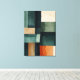 Un tableau abstrait moderne aux formes rectangulaires audacieuses dans les tons vert foncé, orange chaud et terreux. La texture aquarelle crée un équilibre doux entre la structure et la fluidité, parfait pour ajouter de la profondeur et du style à tout espace intérieur.