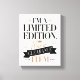 Vous êtes un type, laissez votre décor le montrer ! Cette impression de toile étirée "I’m a Limited Edition, Not a Clearance Item" est le rappel parfait pour embrasser votre unicité. Vous pouvez personnaliser les couleurs de votre préférée, ce qui en fait une pièce de déclaration audacieuse et élégante pour votre chambre, bureau ou espace personnel !