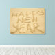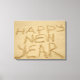 Cette conception présente une image du texte "HAPPY NEW YEAR" écrit dans le sable avec un bâton.
