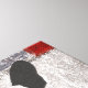 Une photo en noir et blanc d'un terrier boston qui a été transformé de sorte qu'il a une surface de granit rayé qui lui donne un aspect grunge rétro. Une bordure texturée rouge donne à cette image créative un éclat de couleur.