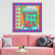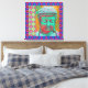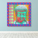 Toile Bouddha Pop avec des bordures en Patchwork en bleu