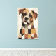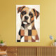 Un portrait géométrique mosaïque chaud d'un boxer aux tons terreux bruns, crème et beige. Boxer patchwork combine un caractère ludique avec un rythme de carreaux sculpturaux, apportant de la personnalité aux intérieurs modernes.