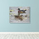 Couple de canard en bois coloré dans un étang avec des coussinets de lys font un grand sujet pour cette toile. Décorez votre pavillon de chasse, votre tanière, votre chambre familiale, votre bureau. Idée cadeau pour le chasseur, sportif, père, grand-père, amoureux du canard.