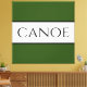 Cette conception comprend du texte "CANOE" à l'intérieur d'une large bande blanche centrale surlignée de fines rayures noires adjacentes à des rayures colorées vertes de la forêt extérieure.