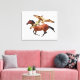 Photographie d'un cheval de race Thoroughbred galopant avec deux Hawks volant autour de lui, en tant qu'oeuvre de toile. Cette oeuvre d'art et ces photographies sont protégées par le droit d'auteur de moi, Christina Spiegeland. Copyright 2016.