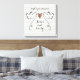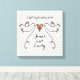 Illustration de 2 belles colombes tenant un ruban coulant avec un coeur d'amour attaché. Cette toile personnalisée est le cadeau mariage ou anniversaire parfait qui peut orner le salon des jeunes mariés pour les années à venir.