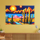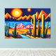 Le tableau en toile représente un paysage désertique avec un ciel crépusculaire vibrant dans le style caractéristique du Cubisme. La composition présente des formes fragmentées et géométriques qui réimaginent la représentation traditionnelle du désert et du ciel. Les couleurs du ciel crépusculaire sont riches et vibrantes, créant un contraste saisissant avec les teintes sablonneuses du paysage désertique. L'abstraction cubiste capte l'essence du désert, en l'insufflant énergie et dynamisme. La peinture invitation les spectateurs à explorer la scène à partir de perspectives multiples, en engageant leur imagination et leur permettant d'interpréter le désert et le ciel crépusculaire de leur propre manière unique. Cette oeuvre d'inspiration cubiste apporte une ambiance captivante et surréaliste à tout espace, ajoutant une touche d'intrigue artistique et évoquant un sentiment d'émerveillement pour la beauté de la nature.