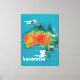 affiche Australie Carte Voyage. Affiche australienne de vacances de dessin animé.