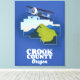 Carte du comté de Crook Oregon décorée avec un bel ancien bi-avion.