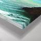 Toile illustrée d'une cascade en bleu pâle avec pulvérisation blanche, entourée de rochers et de feuilles verts