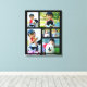 Ajoutez votre série personnalisée de six photos personnalisées à cette impression de toile, incluant l'orientation horizontale, verticale et carré (deux de chacune). Créez un jeton mémorable de votre famille, de vos enfants, de votre jour de mariage ou d'autres occasions spéciales. Photos en couleur haute qualité avec arrière - plan noir dans un amusant montage photo montage mosaïque modèle de mise en page. préservez vos souvenirs chéris dans le style!