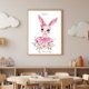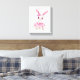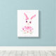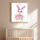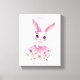 Oeuvre d'art murale représentant une lapine rose florale avec texte personnalisé. Transformez votre nursery en un espace de rêve avec cette impression sur toile de style aquarelle représentant une ballerine lapine. Avec son sourire, ses grands yeux expressifs, sa robe en tulle rose poudré et son noeud sur l'oreille, entourée de fleurs douces peintes à l'aquarelle, ce design allie élégance et fantaisie. Parfaite pour les nurseries, les chambres d'enfants ou comme cadeau attentionné, cette toile personnalisable vous permet de la personnaliser avec le nom de votre enfant pour un souvenir intemporel.