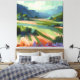 Ce paysage abstrait captivant est un mélange dynamique d'orange, de vert, de violet et d'un ciel vert saisissant. Avec des touches minimalistes, l'oeuvre capture l'énergie vibrante de la nature, où les tons terreux du champ contrastent avec le ciel vert surréaliste ci-dessus. L'utilisation audacieuse de la couleur et des coups de pinceau épais ajoute de la texture et de la profondeur, donnant à la pièce un sens du mouvement et du drame. La texture subtile de la toile améliore la qualité tactile, créant une expérience visuelle harmonieuse mais vivante, sereine et énergique.