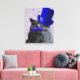 Toile Chat gris avec chapeau bleu et moustache