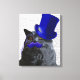 Toile Chat gris avec chapeau bleu et moustache bleue