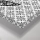 Toile d'une chatte assise d'inspiration japonaise, en forme de floral stylisé, en forme de toile graphique numérique multimédias, contre un arrière - plan d'impression kimono - Noir et blanc avec des tons gris argenté / gris