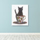 Chat noir en Teacup par FabFunky. Dispose d'un chat assis dans une belle tasse à thé fleurie. | 191389D