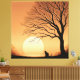 Toile Chat noir et silhouette d'arbre dans le Sun Set
