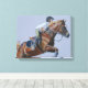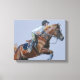 Belle peinture d'une jeune fille sautant son cheval. "Life's Hurdles with Grace" de Patricia Barmatz, artiste animalière.