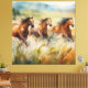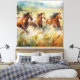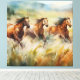 Impression de toile avec une belle aquarelle peinture de 3 chevaux sauvages courant à travers les champs de hautes herbes.