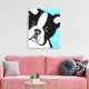 Art moderne de Boston Terrier en couleur plate sur fond bleu avec couleur personnalisable.