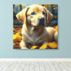 Le mignon chien jouant dans la chute jaune laisse l'art du métal.