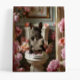 Art avec un Bulldog français ludique profitant d'une pause salle de bain dans une salle de bain remplie de belles fleurs. Cette charmante oeuvre ajoute une touche de chaleur et de personnalité à votre espace, ce qui le rend plus accueillant et joyeux.