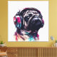 Toile Chien mignon avec casque couleur d'eau illustratio
